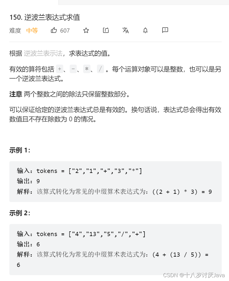 可以保证给定的逆波兰表达式总是有效的。换句话说,表达式总会得出有效数值且不存在除数为 0 的情况。