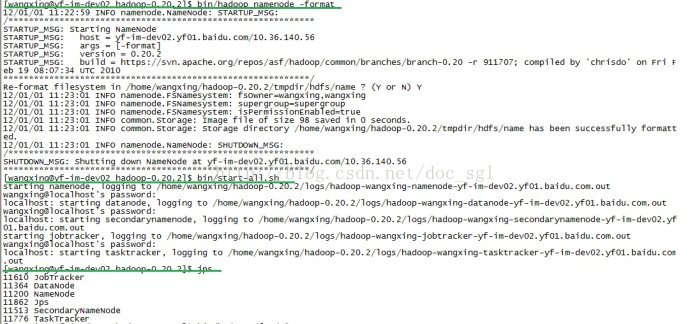5.格式化namenode、datanode:bin/hadoop namenode -format、bin/hadoop datanode -format