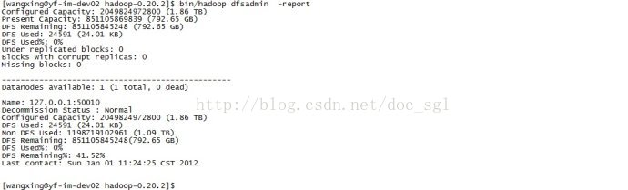9.查看集群状态:bin/hadoop dfsadmin -report