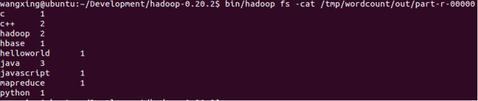 bin/hadoop fs -cat /tmp/wordcount/out/part-r-00000