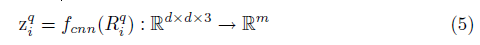 另外,所有的RGB方形图片的结合用R表示,第i张图片Ri的视觉特征是一个向量zi∈R^m,在这篇文章中,我们把图片截成Q个片段,这是为了增强提取的特征的值,因此我们定义图片集合