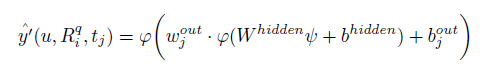 为了计算标签的分数,我们使用了多层感知机作为预测器,它的输入是个性化全连接层ψ的输出。网络的输出是这个post (u,i)标签的相关分数,图片i的片段q.因为这个网络有一个隐藏层,我们用如下的神经网络分数函数(neural network score function)表示:2.3 优化