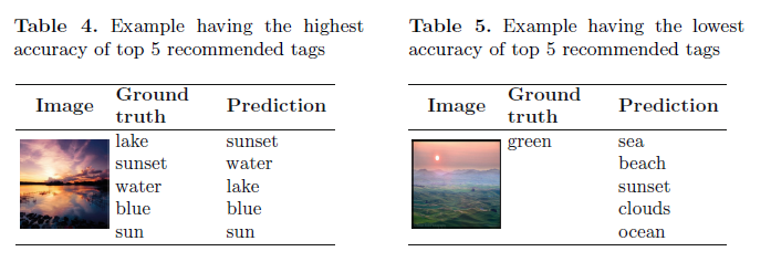 如表4和表5,在这种情况下,CNN-PerMLP工作得很好,人们使用他们频繁的标签或者和图片内容相关的标签去标注一个新图片。可是,如果模型为新图片指派和内容不相关的标签,模型的预测质量很差。