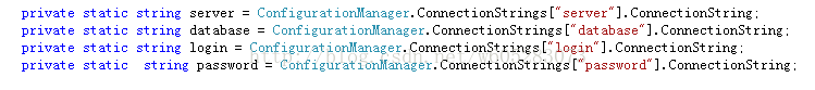private static string login = ConfigurationManager.ConnectionStrings["login"].ConnectionString;