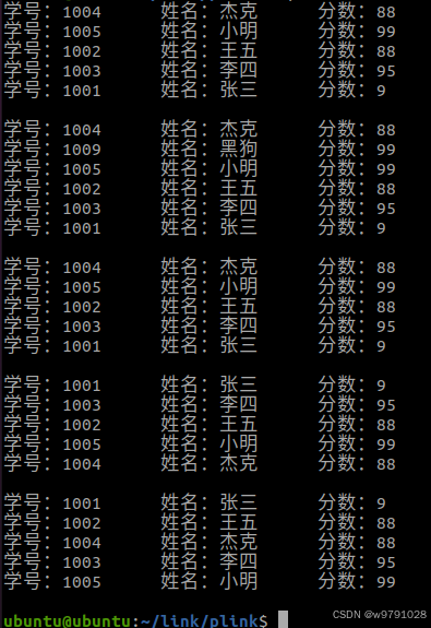 stu a[5]={{1001,"张三",9},{1003,"李四",95},{1002,"王五",88},{1005,"小明",99},{1004,"杰克",88}};
