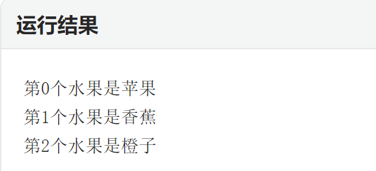 代码解释:依次从列表中取出每个元素赋值给fruit,然后执行循环体。列表有多少元素就循环多少次。
