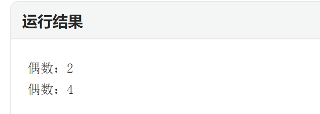 print(f"偶数:{i}") # 只有i=2,4时会执行