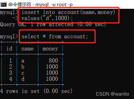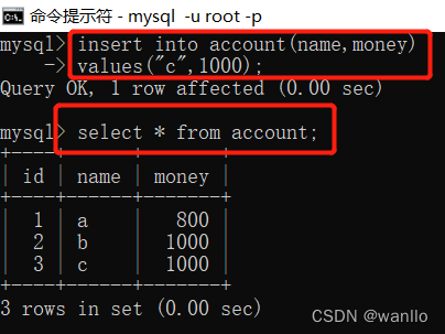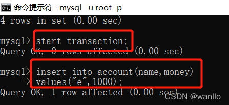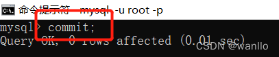接下来再次执行上述语句,然后用commit语句来提交事务;