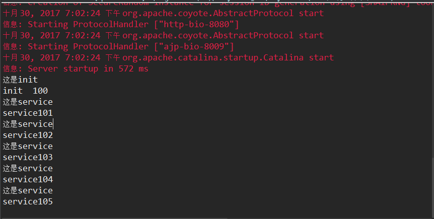 现在通过不同的浏览器去访问http://localhost:8080/test/mytest,并多次访问,控制台打印结果如下: