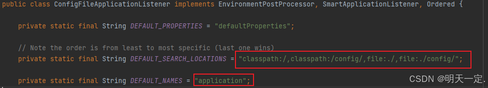 在SpringBoot2中查看ConfigFileApplicationListener类中内部类Loader的load方法,里边是可以看到扫描的路径以及资源名称。默认的路径以及前缀如下: