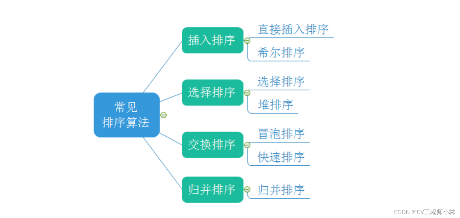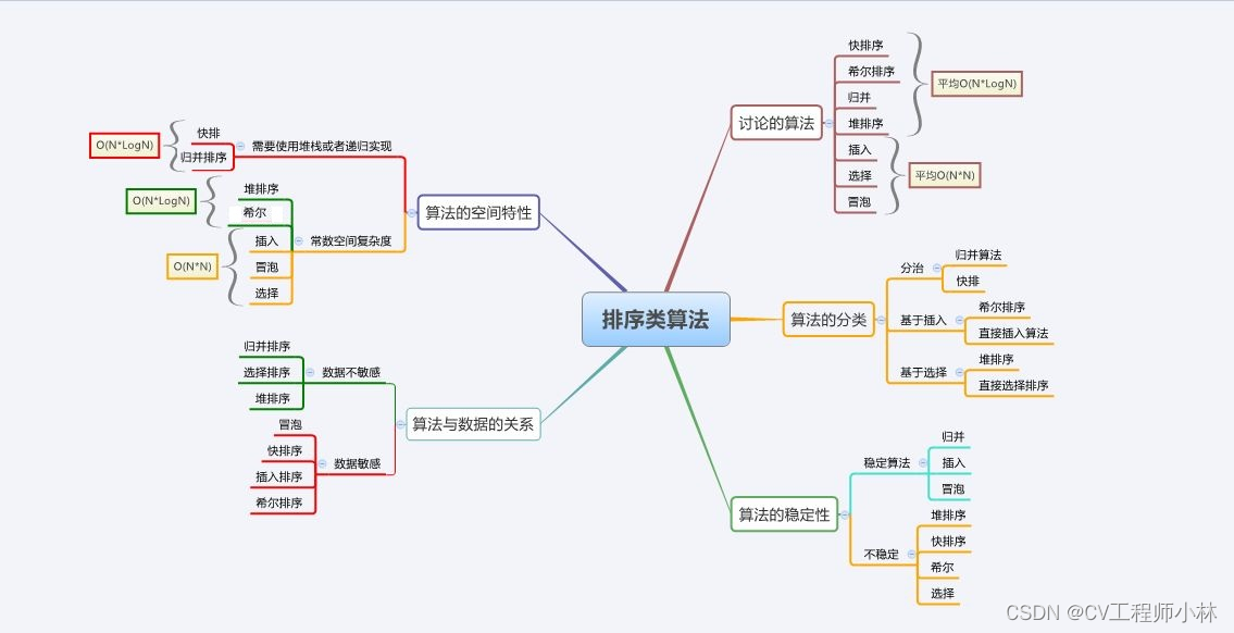 从排序方式上,排序算法一般被分为比较排序和非比较排序。从比较排序的内容上,它一般被分为插入排序、选择排序、交换排序和归并排序,其中,它们每一种又有更细致的分类。