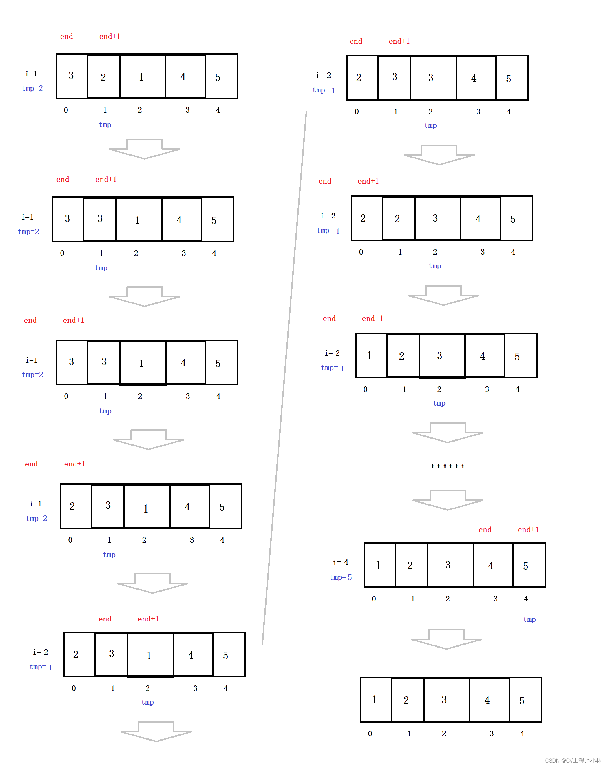 int tmp = a[i]; //将tmp插入到[0,end]中并保持有序