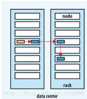 这个计算距离的问题涉及到NetworkTopology,这种数据结构被NameNode节点用来形象的表示HDFS集群中所有DataNode节点的物理位置,自然这个优化工作就交由NameNode来处理了。