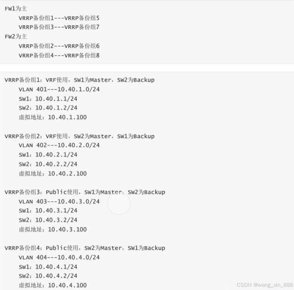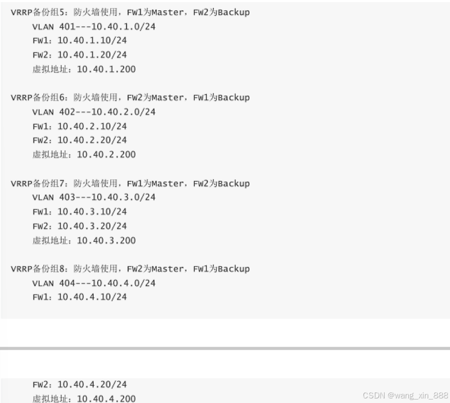 [FW2-GigabitEthernet1/0/2.401]vrrp vrid 5 virtual-ip 10.40.1.200 standby