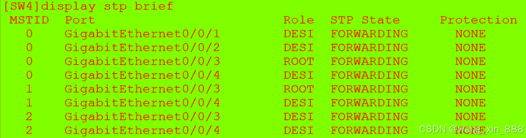 [SW4-GigabitEthernet0/0/3]interface GigabitEthernet 0/0/4
