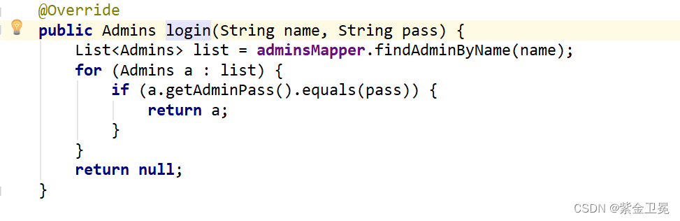 登录时,会现根据用户名去查询是否存在这个用户,然后根据用户输入的密码和表中的密码进行匹配,若能匹配成功,则让用户登陆。核心代码如下: