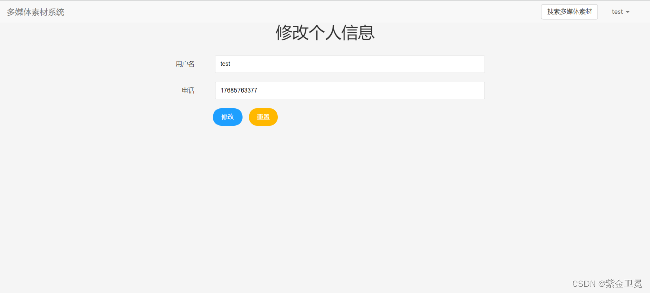 在用户登录之后,点击用户名可以看到个人资料修改菜单,点击个人资料修改,进入个人信息修改页面,修改完手机号后点击修改便可修改成功。