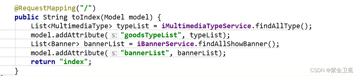 进入前端首页时,会查询出所有的轮播图,以及当前有效的多媒体分类,核心代码如下: