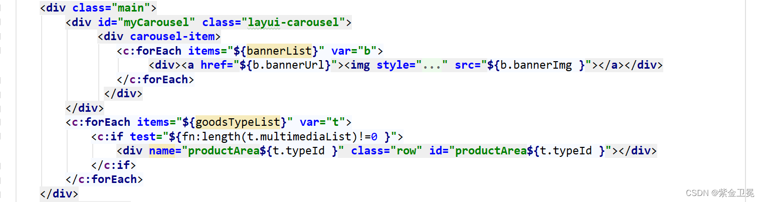 后端把数据放到model里,前端对model的list进行遍历,显示出轮播图和分类信息。