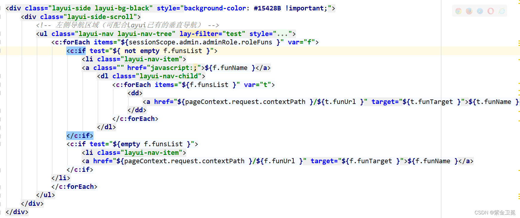 这是显示当前登录用户拥有的菜单权限。前端把用户菜单权限进行遍历,先是遍历一级菜单,然后遍历二级菜单,把对应的菜单url放在超链接里。