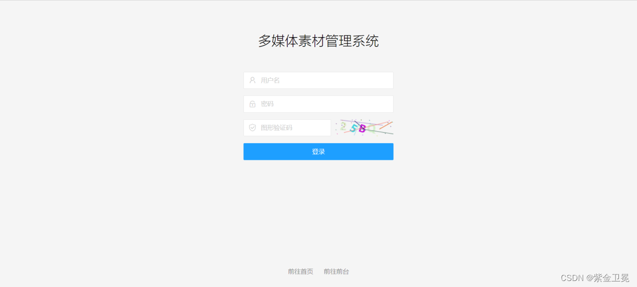在前端登录页面点击下方的前往后台,跳转到管理员登录的页面,输入用户名、密码和验证码,点击登录。全部输入正确后可以登录成功,登录成功后,进入管理端页面。