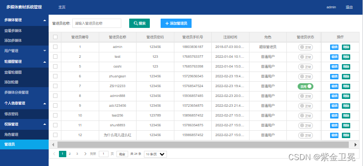 本文介绍了基于SSM架构的多媒体素材管理系统,包括前端用户浏览、搜索、注册、登录及评论功能,以及超级管理员和管理员的权限管理,涉及数据库设计、用户角色划分和系统实现细节。