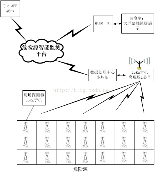 3、数据处理中心小基站:与lora主机连接,把现场数据经过处理后,向上传输到“危险源监控管理云平台”,可以通过3g网络、4g网络、普通网络接入。