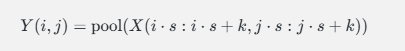 对于输入特征图 X和池化窗口大小 k×k,池化操作可以表示为: