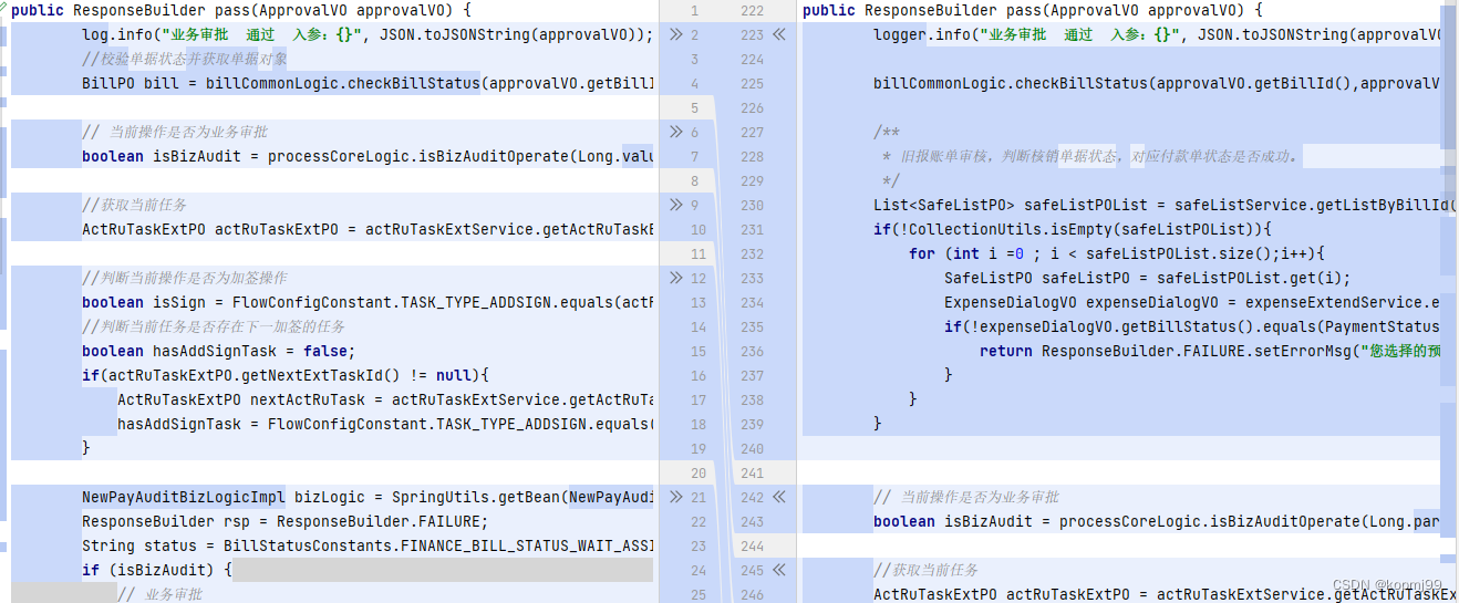 仅以上图的“审批通过”方法为例,可以看出除有少部分代码不同外(因单据类型不同),绝大部分代码基本一致。