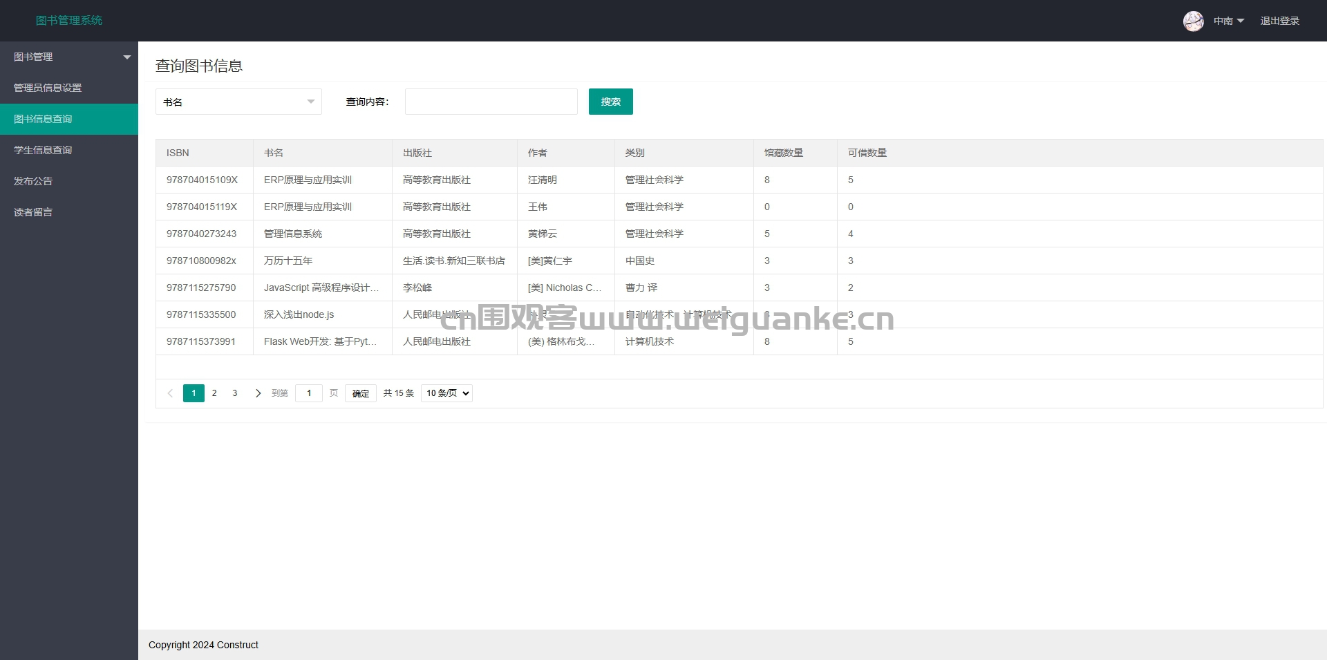 图书管理 入库管理学生借书学生还书图书注销发布和查询