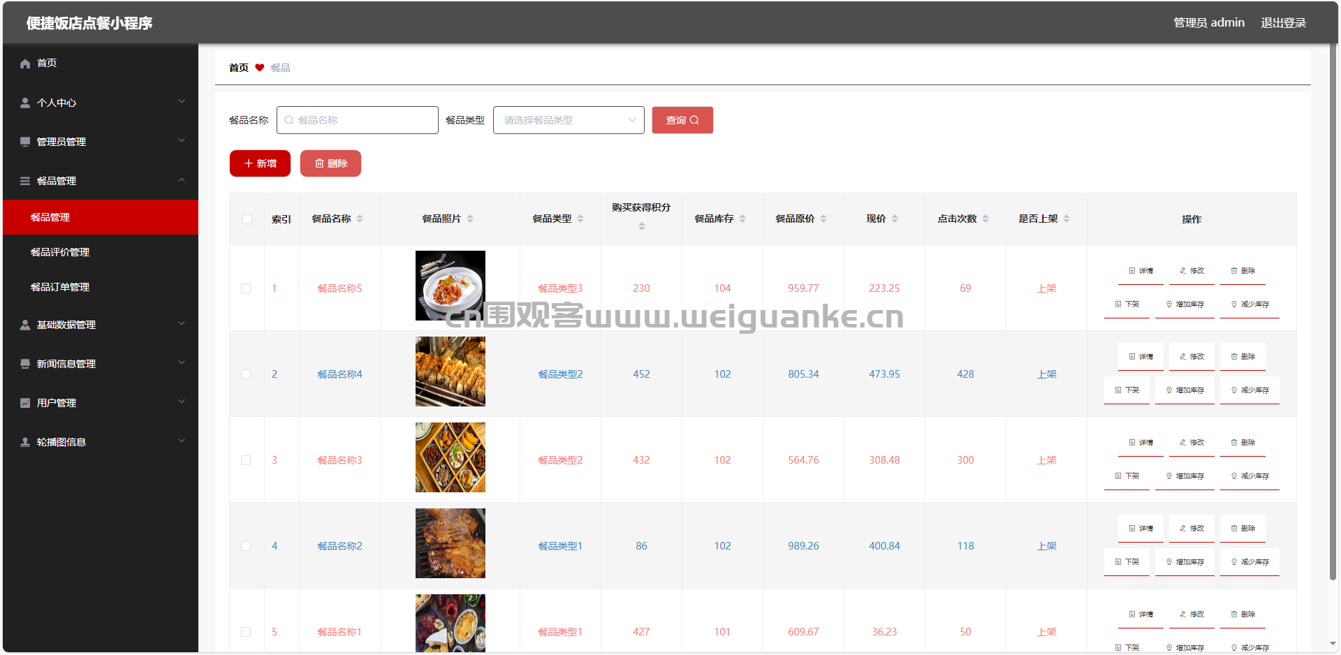 4.餐品管理:查看、新增、编辑、删除餐品信息