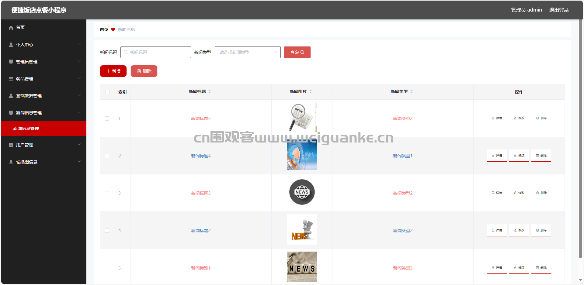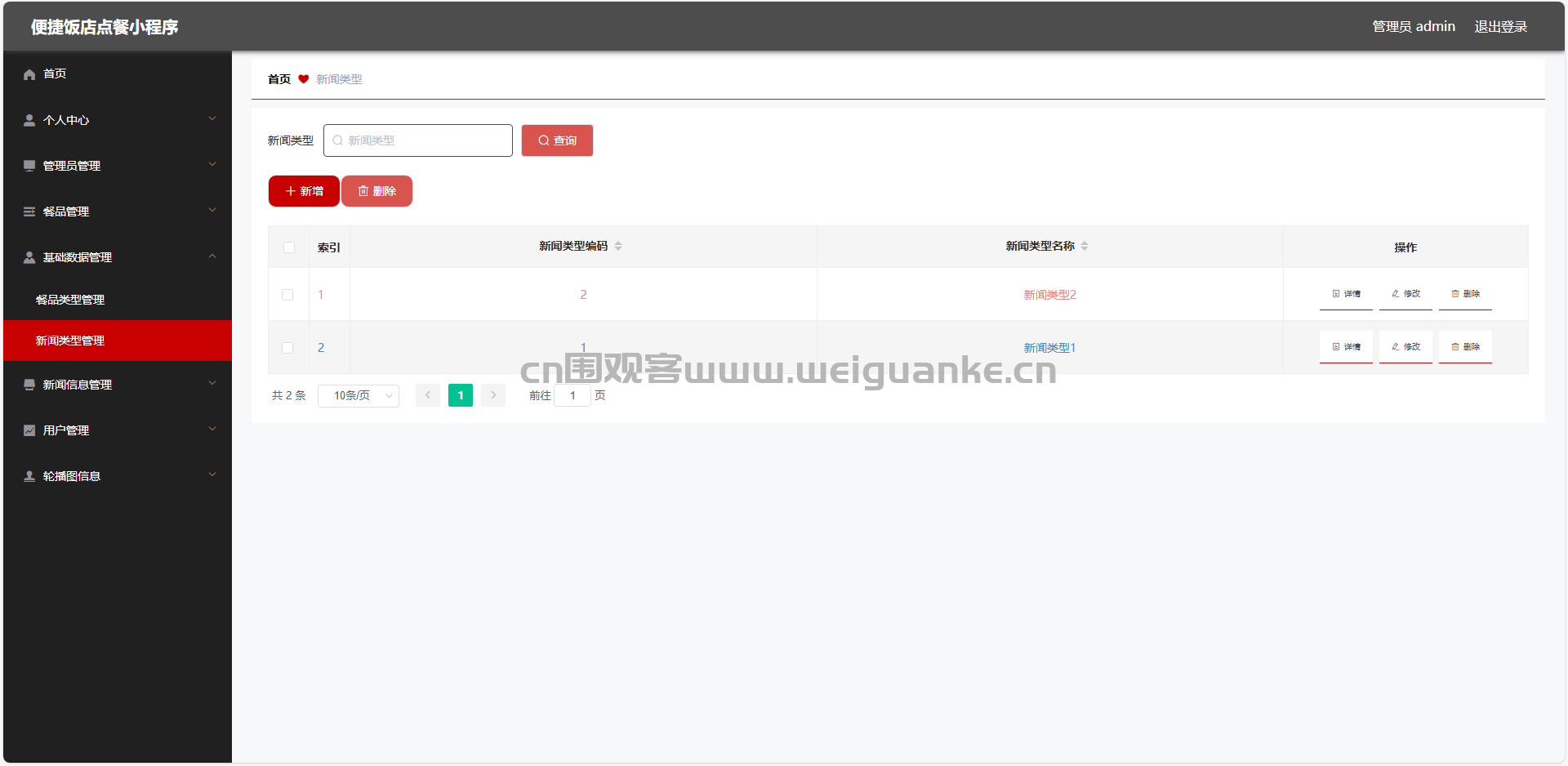 3.新闻类型管理:查看、新增、编辑、删除新闻类型信息
