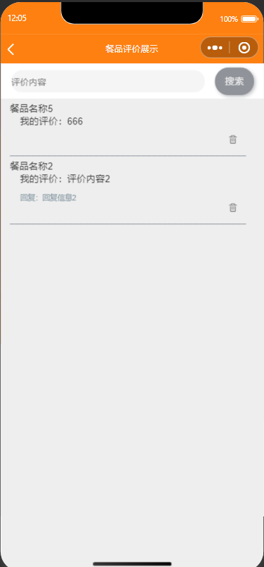4.餐品评价管理:查看、回复、删除评价信息