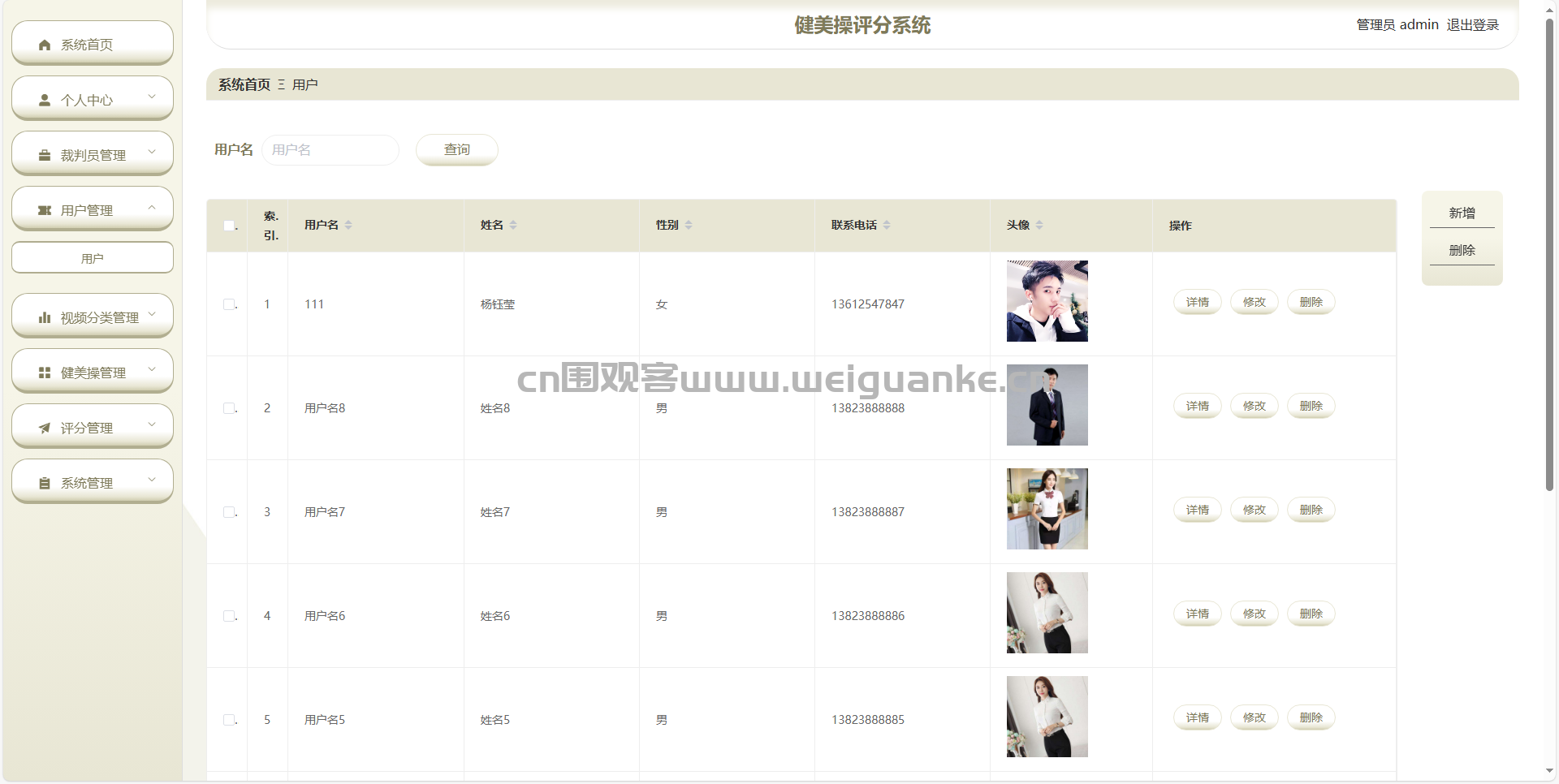视频分类管理:对上传的健美操视频进行分类管理,可以添加、编辑、删除视频分类。