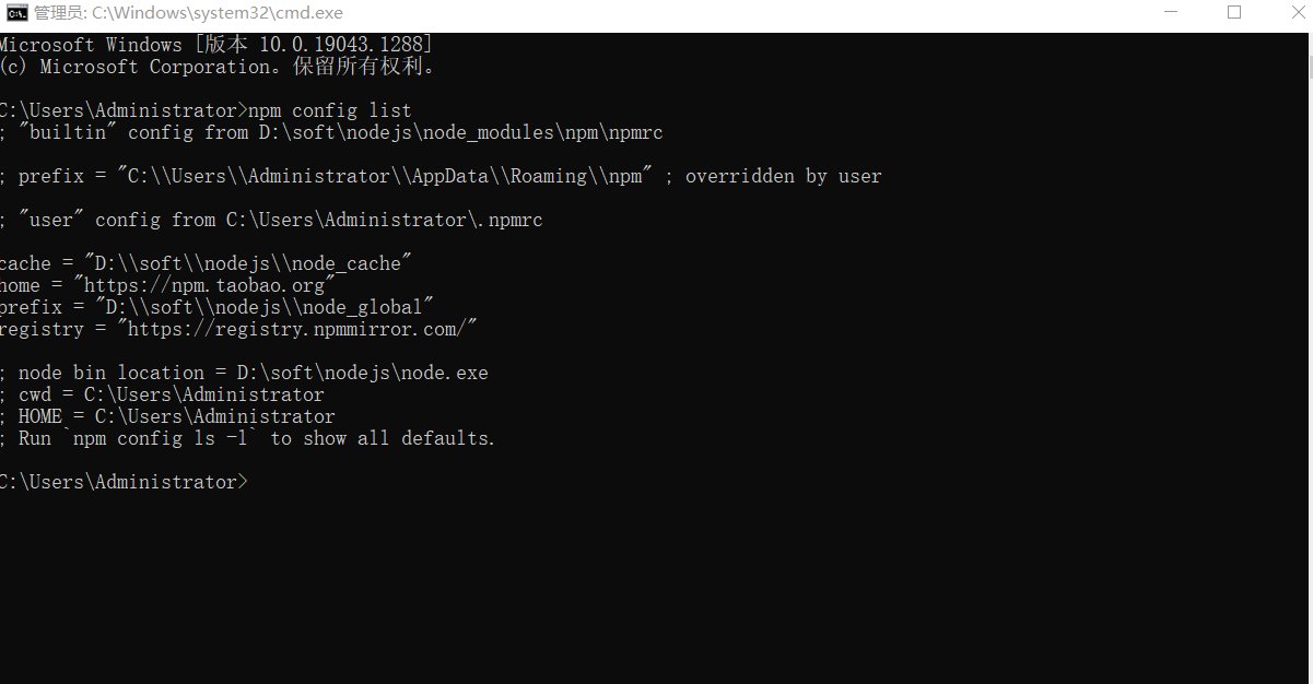 nodeJS安装和环境变量的配置 npm config list 获取npm配置信息 -------------说明:这里的环境配置主要配置的是npm安装的全局模块所在的路径,以及缓存cache的路径,之所以要配置,是因为以后在执行类似:npm install express [-g] (后面的可选参数-g,g代表global全局安装的意思)的安装语句时,会将安装的模块安装到【C:\Users\hjm\AppData\Roamingpm】路径中,占C盘空间。例如:我希望将全模块所在路径和缓存路径放在我no.