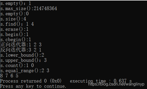 cout<<"s.max_size():"<<s.max_size()<<endl;///返回集合所能容纳的元素的最大值