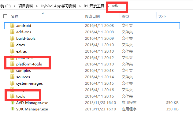 2、在path系统变量中添加platform-tools和tools的路径(这两个文件是SDK文件中的)