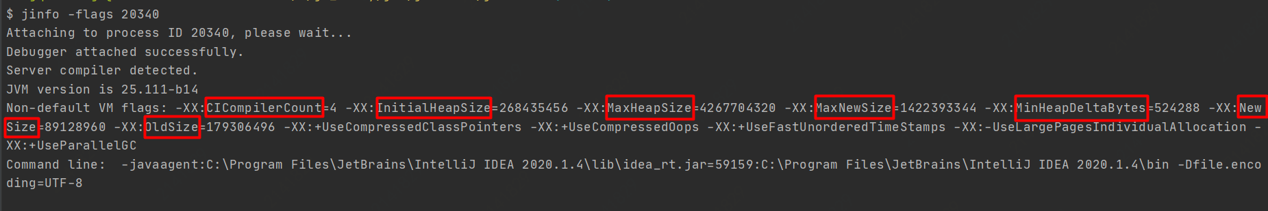 不是jinfo -flag -XX:NewSize 20340,而是jinfo -flag NewSize 20340,不包含-XX: