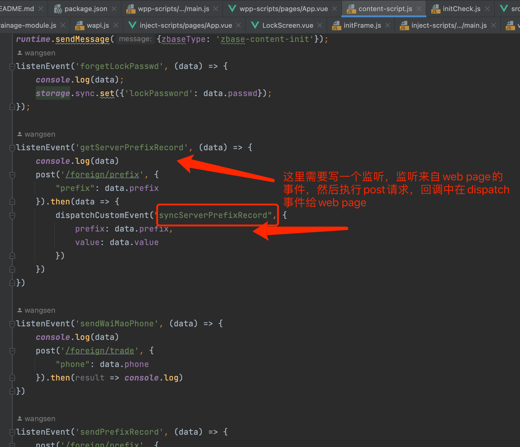 插件的 content script 只作为数据处理层,也即类似本地的 service api,如果学过 nuxt.js 的人不会陌生,将执行层都放到网页层面去,content script 负责与插件 api 进行交互,数据通过事件监听的方式传递给普通网页,这样可以让 content script 逻辑清晰移动,不混杂 css 和 html,也有利于团队协作开发