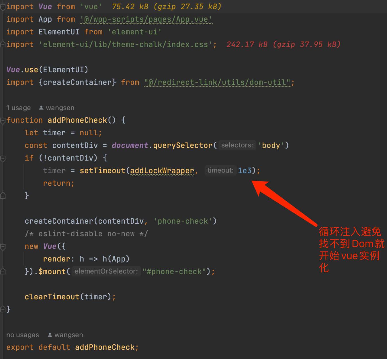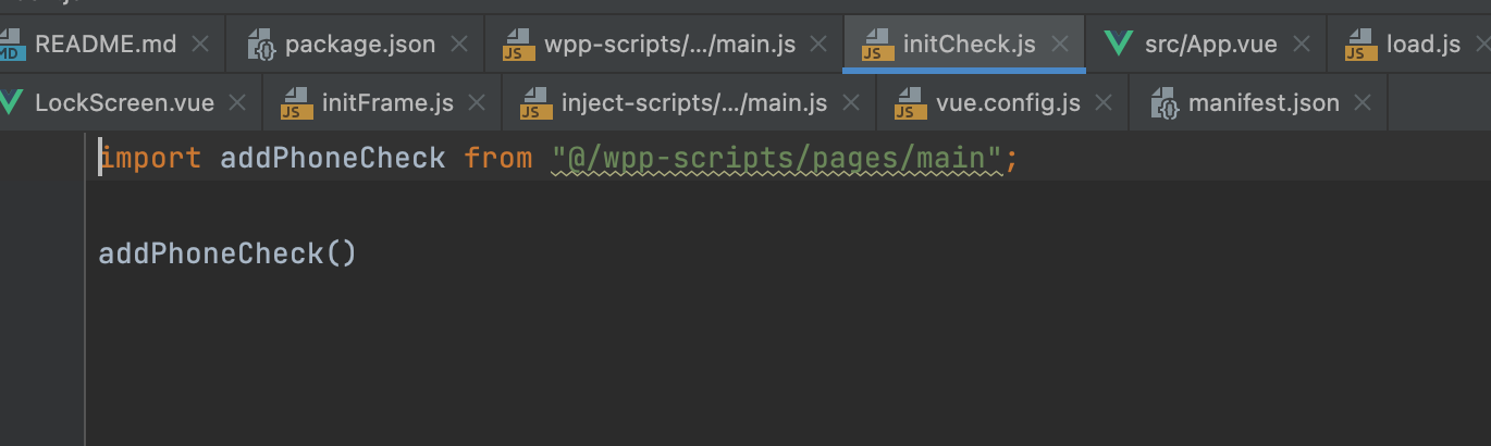 initCheck.js 只负责初始化 vue 对象,引入 vue main.js 中抛出来的函数