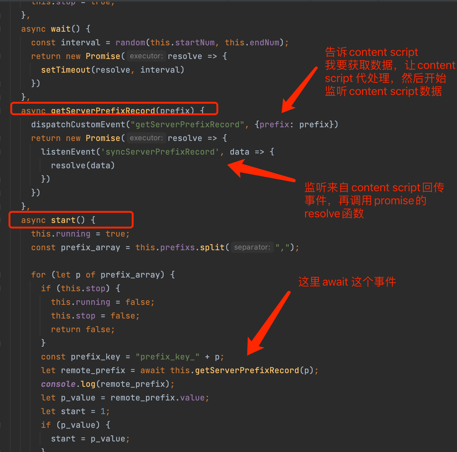 以上方式实现了程序走到 await this.getServerPrefixRecord(p) 会等待数据返回来之后才会继续执行下面的逻辑,这样就做到了异步转同步调度了