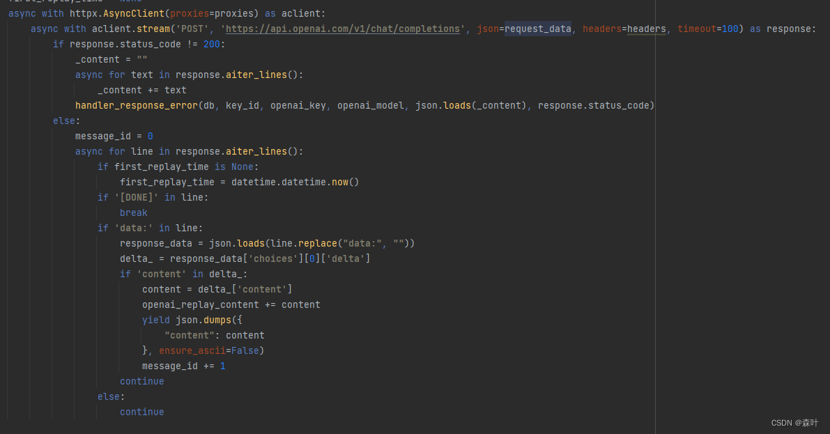 https://github.com/openai/openai-python/我没怎么看,但看起来没有给stream案例,只是给了request的案例,如果只是request的那其实就挺简单了,就没啥讲的了