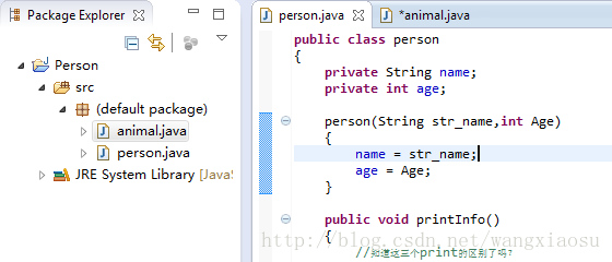 注意:每一个java文见中最多只可以有一个public权限的类,而且该.java文件的名字要与该public权限的类名字相同,如上图中person类与person.java文件;一个java文件中也可以没有public权限的类,此时该.java文件的名字与该文件中的任何一个类名字相同即可。