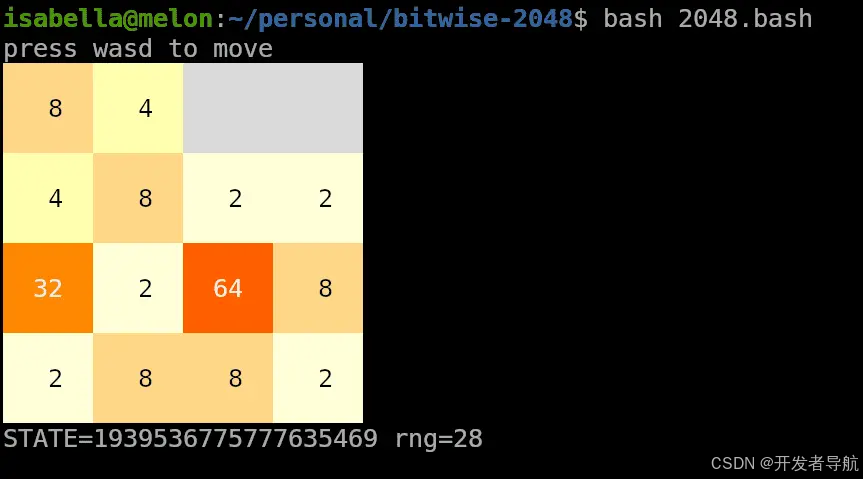 在开发学习或日常娱乐中,许多开发者希望找到轻量、简洁且具有技术参考价值的游戏项目。常见的 2048 游戏实现多依赖复杂框架或采用二维数组模拟棋盘,代码量大且依赖较多,不利于理解核心逻辑,也难以在不同环境快速运行。bitwise-challenge-2048 作为一款基于位运算实现的 2048 游戏,仅一个.bash 文件、零依赖且不到 200 行代码,巧妙用位运算管理游戏状态,完美解决了这些问题。