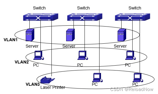 每个广播域即一个VLAN,VLAN和物理上的局域网有相同的属性,不同之处只在于VLAN是逻辑的而不是物理的划分,所以VLAN的划分不必根据实际的物理位置,而每个VLAN内部的广播、组播和单播流量都是与其它VLAN隔绝的。