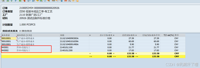 四、生产订单领料,CO03查看成本分析