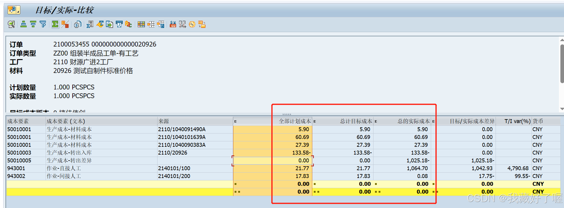 CO03成本分析,此时出现总计目标成本