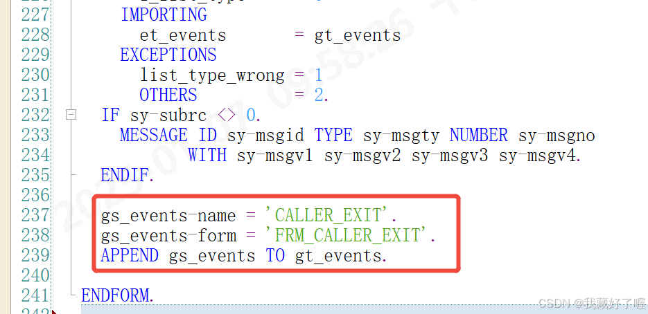 gs_events-form = 'FRM_CALLER_EXIT'.