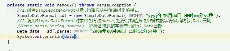 注意parse方法声明了一个异常。若字符串和构造方法的模式不一致时抛出。