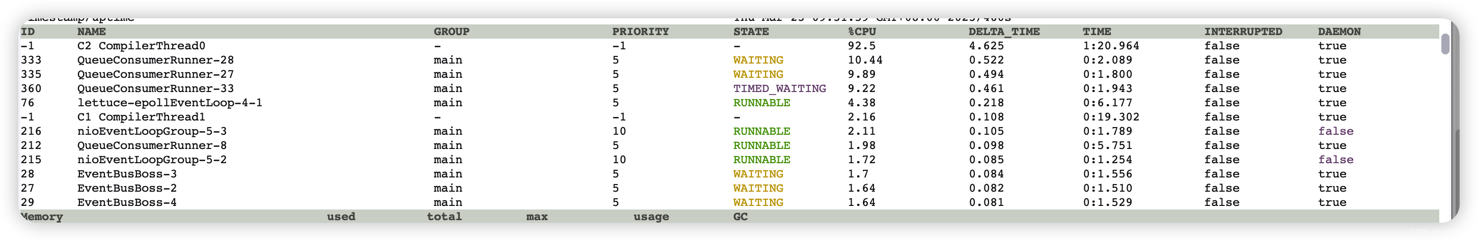 项目刚启动时,发现代码执行的巨慢,通过查看线程发现:有一个C2 compileThread0的线程占用了很大的cpu。进一步查询发现了一个jvm的特性,C2 Compiler 是JVM在server模式下字节码编译器,JVM启动的时候所有代码都处于解释执行模式,当某些代码被执行到一定阈值次数,这些代码(称为热点代码)就会被 C2 Compiler编译成机器码,编译成机器码后执行效率会得到大幅提升。